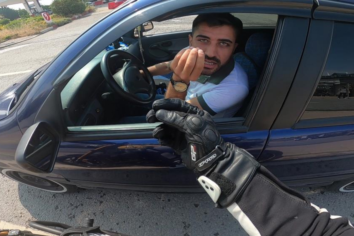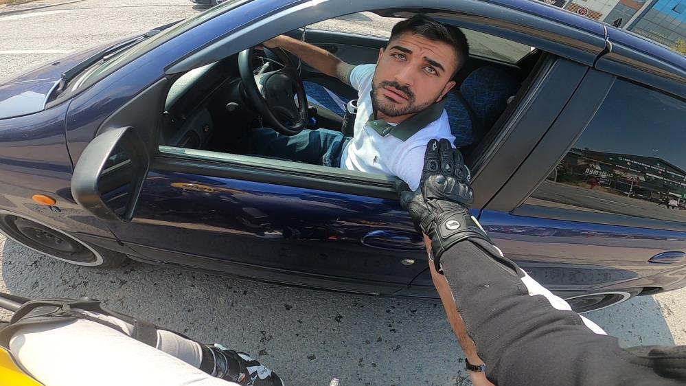 İstanbul’dan arkadaşını ziyaret etmek için motosikletine binerek Gebze’ye gelen yüzme antrenörü Orhan Köseoğlu, trafikte ilginç bir olayla karşı karşıya kaldı. Motosikletiyle seyir halinde olan Köseoğlu, yol üzerinde bir otomobilin iki şeridi ortalayarak gittiğini fark etti. Otomobili geçmek için hızlanan motosiklet sürücüsü, o sırada otomobil sürücüsünün aynaya bakmadan şerit değiştirmesi sonrasında kaza yapmaktan son anda kurtuldu. Otomobil sürücüsünün kendisiyle bir süre tartışmasına rağmen olumlu cümleler kurarak sakinliğini koruyan Köseoğlu, bu davranışıyla otomobil sürücünün de sakinleşmesini sağladı. Bunun üzerine otomobil sürücüsü, yaptığı hatanın farkına vararak tartıştığı motosiklet sürücüsünü çay içmeye davet etti. Motosiklet sürücüsünün kask kamerası tarafından kaydedilen o anlar ise renkli görüntüler oluşturdu.