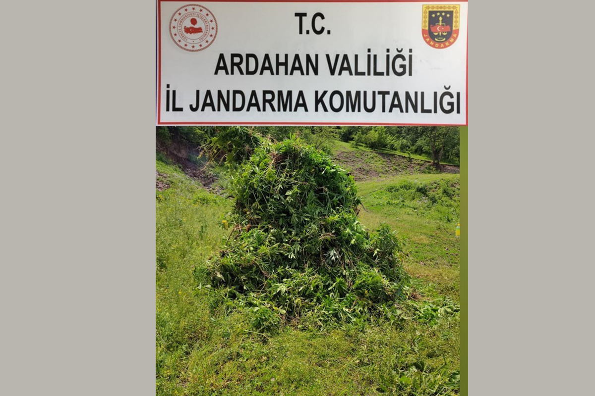 Ardahan’ın Posof ilçesine bağlı Asmakonak köyü mevkiinde jandarma ekipleri tarafından narkotik köpeği Vera ile birlikte narkotik tespit ve değerlendirme planı çerçevesinde icra edilen çalışmalar neticesinde; arazide kendiliğinden yetişmiş, boyları 1 ve 1.5 metre arasında değişen 5 bin 340 kök kenevir bitkisi tespit edildi. Olayla ilgili Cumhuriyet Savcısına bilgi verildi. Talimatlar doğrultusunda İlçe Tarım ve Orman Müdürlüğü ekibince yapılan incelemede kenevir bitkilerinin kendiliğinden yetiştiği ve herhangi bir bakımın yapılmadığı belirlendi. Kenevir bitkileri İlçe Tarım Müdürlüğü ekipleri nezaretinde sökülerek yakılmak suretiyle imha edildi.