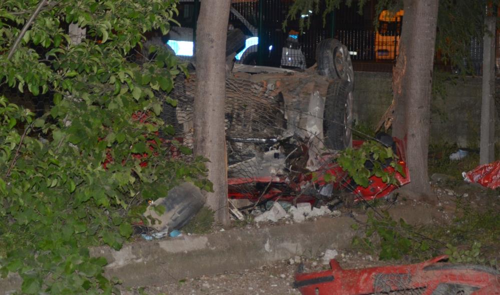 Kontrolden çıkan araç bahçe duvarına çarparak takla attı: 2 ölü, 1 yaralı