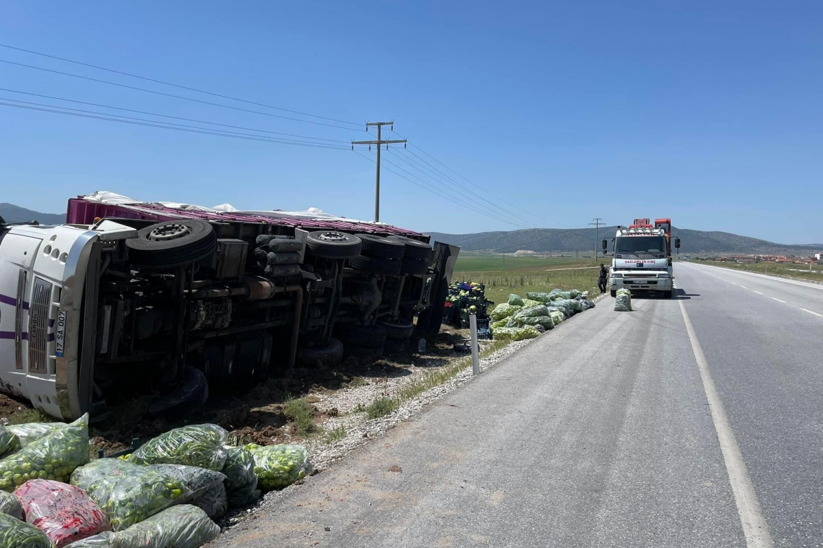 İhbar üzerine bölgeye gelen jandarma ekipleri gerekli güvenlik önlemlerini aldı. Kazada dorseden yola saçılan poşetler içerisindeki dolmalık biberler ise olay yerine gelen bir başka kamyona nakledildi.