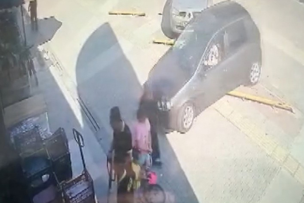 İş yerinin güvenlik kamerasına yansıyan görüntülerde ise, mağaza önünde duran araç park kısmındaki demir korkulukları aşan otomobil mağazanın camına çarpıyor. O sırada 2’si çocuk 5 kişi kazadan kıl payı kurtuluyor. Yaşlı kadın arabanın aynasının çarpması sonucu yere düşüyor.