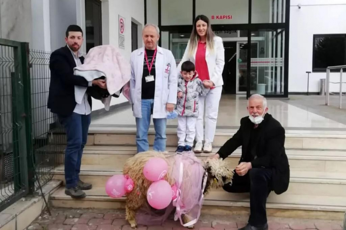 Nisan bebeğin dedesi Resul Serdar, torunun sağlıkla taburcu edilmesi üzerine sevincini hastane önüne pembe kurdelelerle süslediği bir koç getirerek gösterdi. Koç hastane önünde renkli görüntülere sahne oldu.