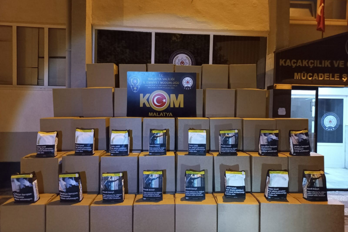 Malatya KOM Şube Müdürlüğü ekiplerince yürütülen çalışmalar çerçevesinde Sürgü ile Kale yol uygulama noktalarında durdurulan 2 ayrı araçta yapılan aramada bir ton kaçak tütün ile çok 60 bin dal sahte bandrollü makaron ele geçirildi
