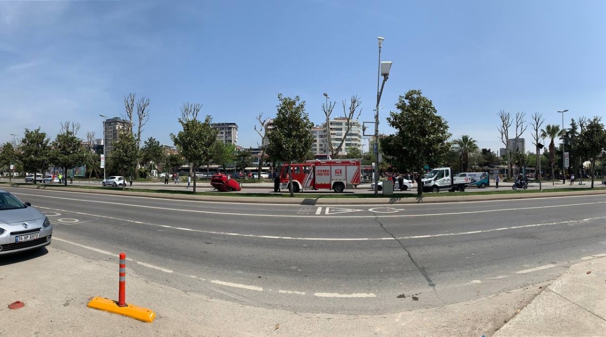 Maltepe’de feci kaza: Kontrolünü kaybeden sürücü, seyir halindeki 3 araca çarparak takla attı