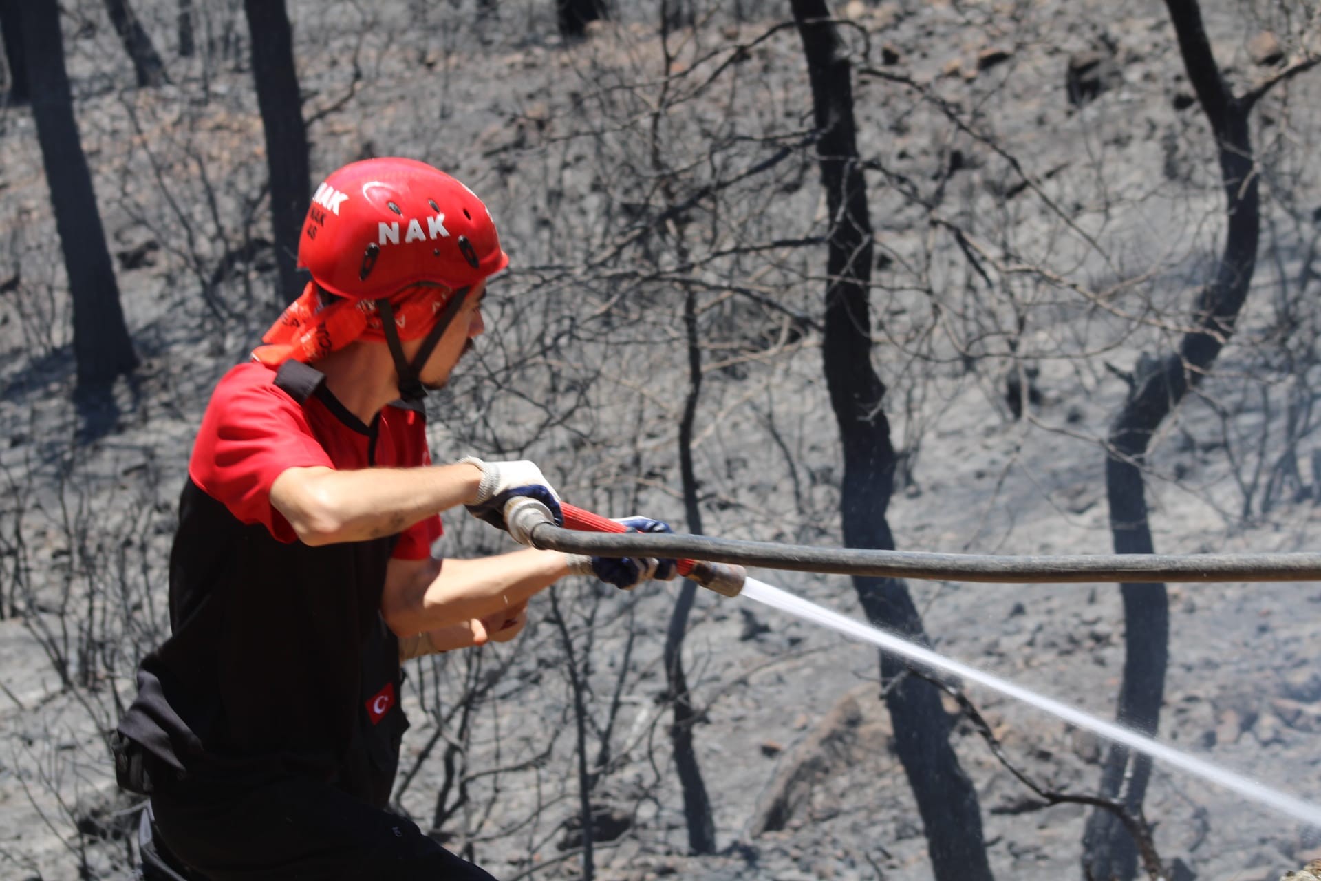 Helikopter ve uçaklar havadan gördükleri ufacık bir dumana dahi su atarak bölgeyi soğuturken kara ekipleri de bölgeyi didik didik yaparak ağaç gövde ve köklerine su sıkıyor. Ekipler, “yangın tamamen kontrol altına alındı bölge güvenli” talimatı alana kadar nöbetlerine devam edeceklerini belirttiler.