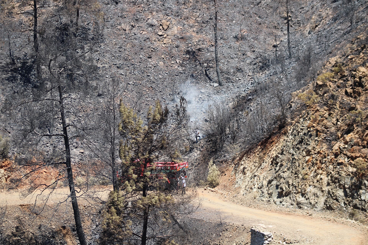 Marmaris Bördübet yangınında soğutma çalışmaları tüm hızı ile devam ediyor