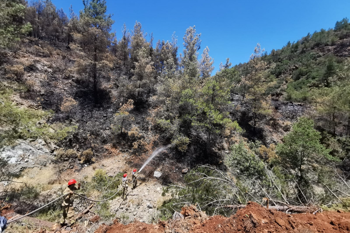 Marmaris’te yanan alanların soğutma çalışmaları devam ediyor