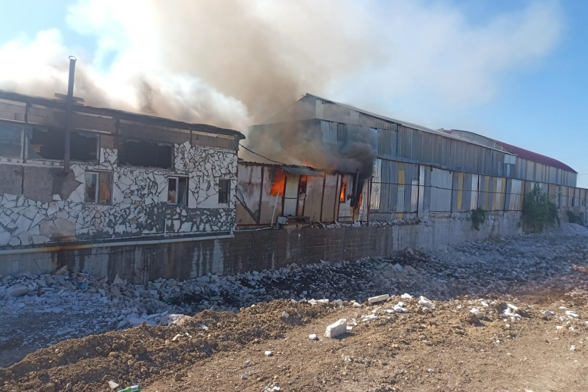 Mermer işletmesi şantiyesi yangında küle döndü
