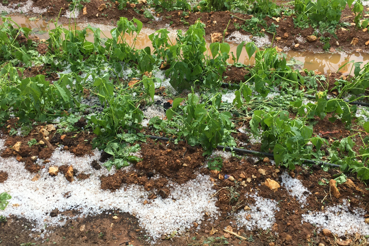 İlçeye bağlı Üçtepe, Çiriş, Kayacı ve Koyuncu mahallelerinde dün yaşanan şiddetli dolu, meyve bahçeleri ile açıkta ürün yetiştirilen sebze tarlalarında büyük zarara yol açtı. Adeta afete dönüşen dolu yağışı sonrasında İlçe Tarım ve Orman Müdürlüğü ekipleri hasar tespit çalışması başlattı. Ön hasar tespit çalışmasında 406 üreticiye ait yaklaşık bin 573 dekar bahçe ve tarladaki meyve ve sebzelerin yüzde 70 oranında zarar gördüğü belirlendi. Üçtepe’de 212 üreticiye ait 780 dekar alanda yüzde 70, Çiriş’te 80 üreticiye ait 400 dekar alanda yüzde 80, Kayacı’da 50 üreticiye ait 223 dekar alanda yüzde 70 ve Koyuncu bölgesinde 64 üreticiye ait 170 dekar üretim alanında yüzde 30 ile yüzde 70 oranında hasar olduğunun tespit edildiği bildirildi.