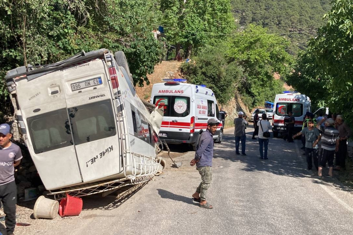 Edinilen bilgiye göre, kiraz toplamaktan dönen tarım işçilerini taşıyan Ramazan Sarıçiçek yönetimindeki 63 NU 966 minibüs, ilçe merkezine 30 kilometre mesafedeki rampada freninin patlaması sonucu istinaf duvarına çarparak devrildi.
