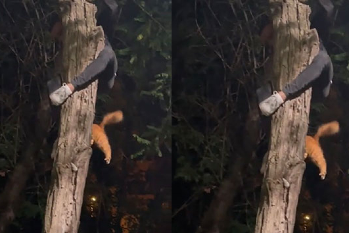 Nişantaşı’nda ağaçta mahsur kalan kediyi genç adam böyle kurtardı