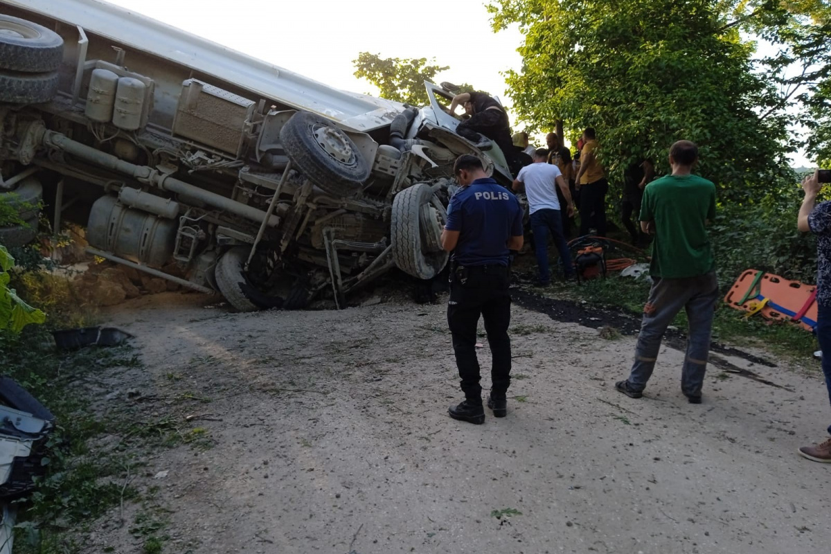 Edinilen bilgiye göre, Yusuf D. (57) idaresindeki 34 AFR 420 plakalı çakıl yüklü kamyon, Güneycik Mahallesi’nde bulunan özel bir şirkete ait çakıl ocağından yükleme yaptıktan sonra Demircili Mahallesi’nde virajı alamayarak bir alt yola devrildi. Kazada araçta bulunan İlhami Özel (30) kamyondan atlaması sonucu yaralandı. Kaza nedeniyle yol ulaşıma kapanırken, ihbar üzerine olay yerine 112 Acil Sağlık, itfaiye ve polis ekipleri yönlendirildi. Araçtan atlayan ve yaralanan şahıs, ekipler tarafından Kumru Devlet Hastanesi’ne götürüldü. İtfaiye ekipleri de kamyon içerisinde sıkışan sürücüyü yaklaşık 2 saatlik çalışmanın ardından araçtan çıkarttı. Yaralı sürücü, sağlık ekiplerinin olay yerindeki ilk müdahalesinin ardından Kumru Devlet Hastanesi’ne götürüldü. Sürücünün durumunun ağır olduğu öğrenildi. Kazayla ilgili inceleme başlatıldı.