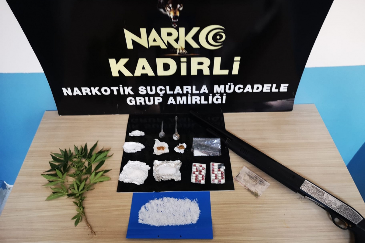 Operasyonda, arama yapılan adreslerde 72 gram metamfetamin, 26 adet sentetik ecza, 2,5 gram bonzai, 1 gram esrar maddesi, 1 adet Hint keneviri ile 1 adet ruhsatsız pompalı tüfek ele geçirildi.
