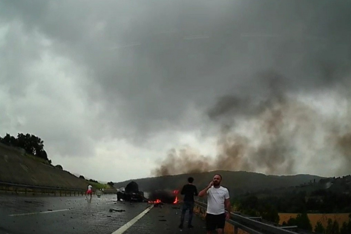 Otoyolda 1 kişinin öldüğü, 2 aracın yandığı kaza anı kameralara yansıdı