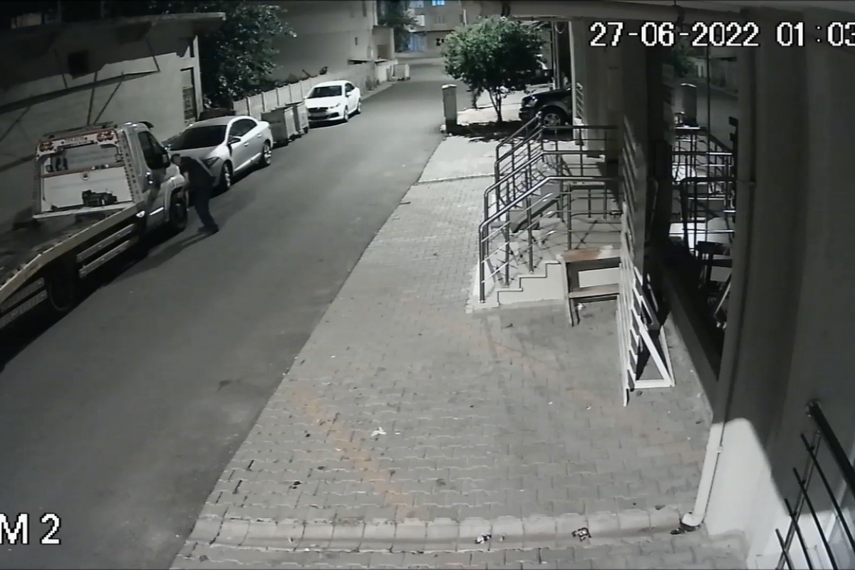 Olay, gece saat 01.00 sıralarında Muradiye Mahallesi Nazım Sav Caddesi 94. Sokak üzerinde meydana geldi. İddiaya göre, park halindeki bir aracın lastiğini cebinden çıkardığı bıçak ile kesen şüpheli şahıs, daha sonra hiçbir şey olmamış gibi yoluna devam etti. Durumu fark eden araç sahibi, emniyete haber verdi. Olay yerine intikal eden polis ekipleri, aracın lastiğine kesici bir aletle zarar verildiğini tespit etti. Polisin, bir binaya ait güvenlik kamerasını incelemesi sonrası, araç lastiklerinin kimliği henüz belirlenemeyen bir kişi tarafından bıçakla kesildiği tespit edildi. Eşkali alınan kişinin yakalanması için çalışma başlatıldı.
