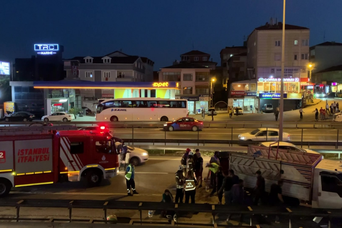 Pendik’te yakıtı bittiği için emniyet şeridinde duran kamyonete otomobil çarptı: 4 yaralı