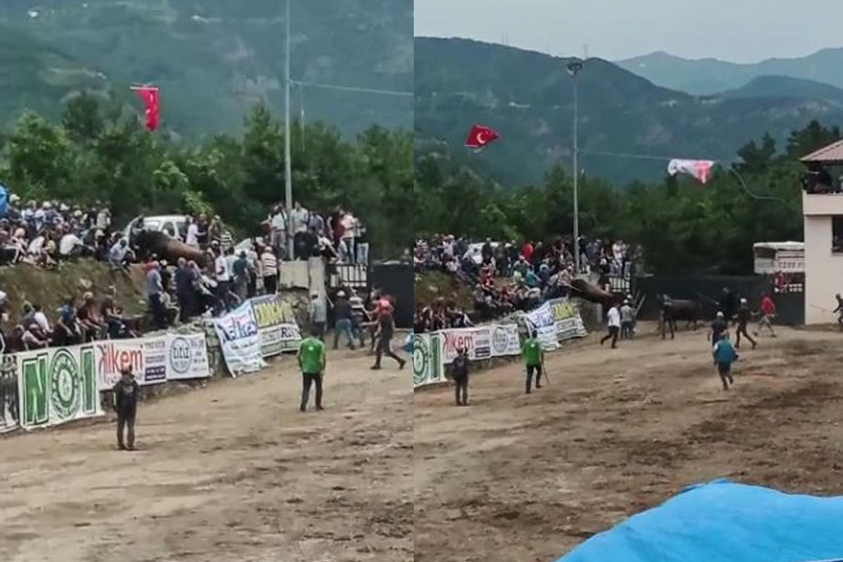 Güreşler sırasında bir boğa rakibinden kaçarak tribünde bulunan seyircilerin arasına daldı. Boğa güreşleri arenasının kenarına yapılan duvardan atlayan boğa güreşleri izleyen seyircinin arasından koşarak uzaklaştı. O anlar ise güreşleri izleyen bir kişi tarafından cep telefonu kamerasına yansıdı. Etrafta bulunanların bağrışmalarıyla, korku dolu anların yaşandığı olayda şans eseri kimse yara almadı.