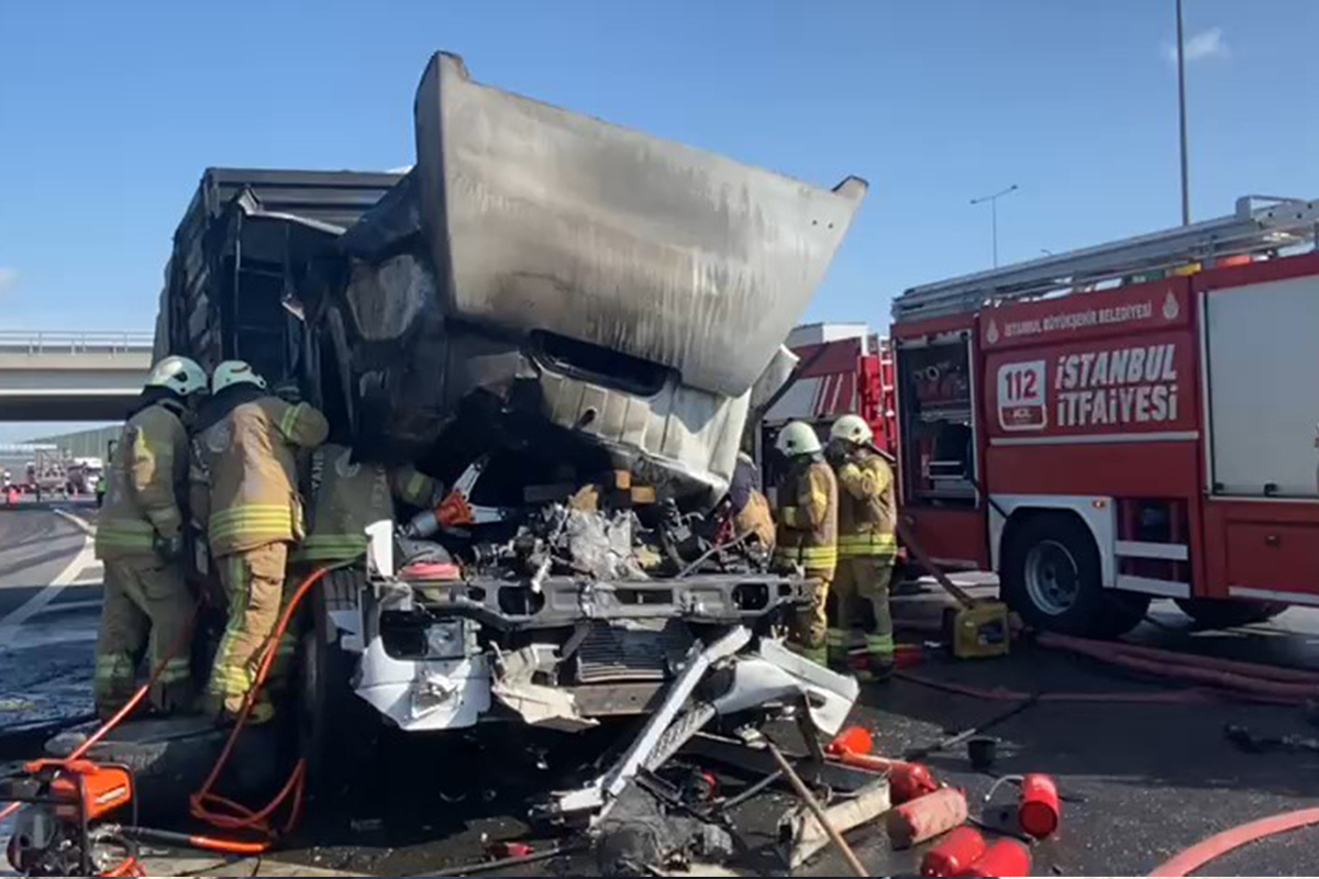 Sancaktepe’de iki tır çarpıştı, tırlardan biri alev aldı: 1 ölü