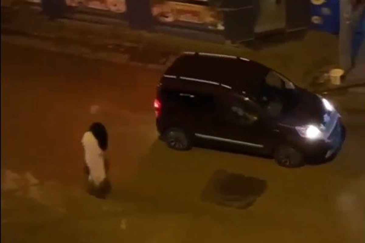 Caddenin ortasına çöken, daha sonra ayağa kalkarak araçların üzerine giden ve koşarak ortadan kaybolan kişi vatandaşlar tarafından anbe an cep telefonuyla kaydedildi.