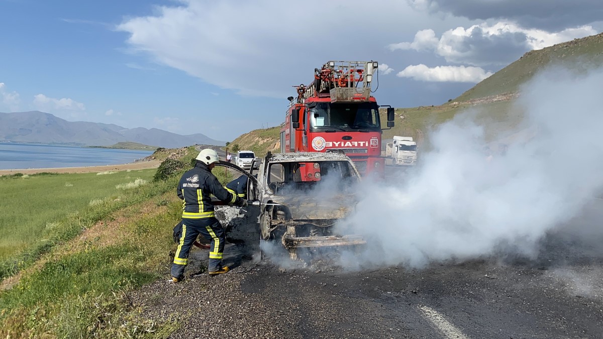 Van-Erciş karayolunun 50’nci kilometresinde Van istikametine doğru seyir halindeki Feyat Beyaz isimli sürücünün kontrolündeki 27 ABY 297 plakalı Citroen Nemo marka kapalı kasa kamyonet, saat 16.35 sıralarında bilinmeyen bir nedenle alev aldı.