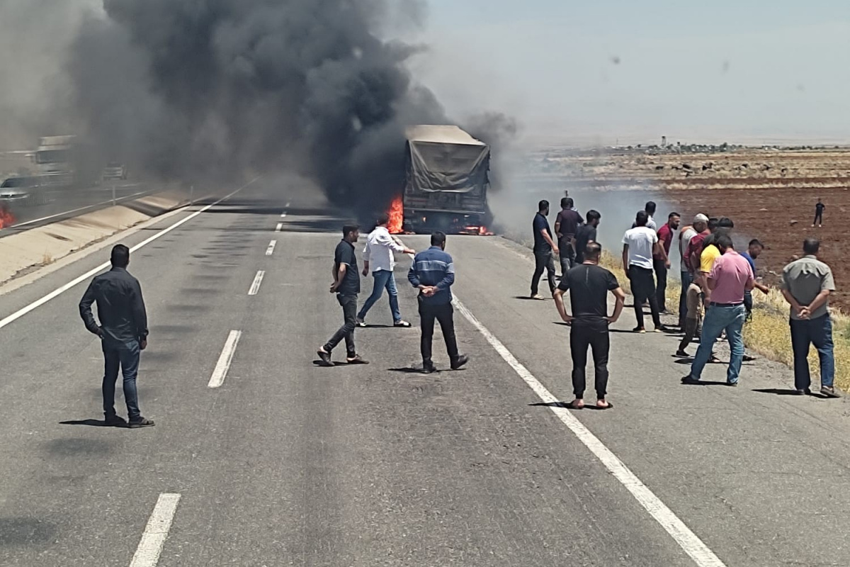 Alınan bilgilere göre, öğle saatlerinde Cizre ilçesine bağlı Katran köyü mevkiinde uluslararası İpek Yolu’nda seyir halindeki tırın dorse tekerleri alev aldı.