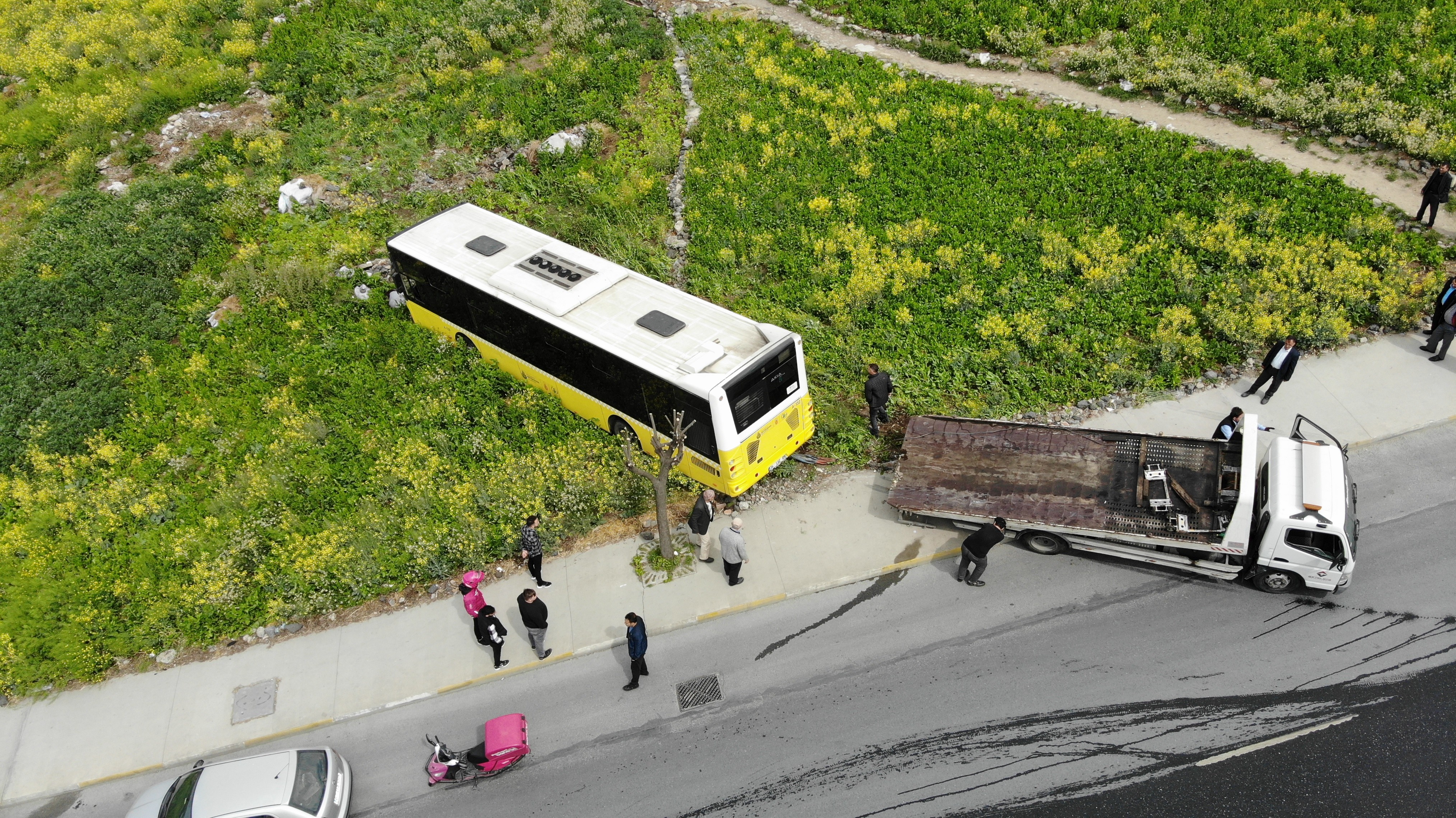 Kaza, Yunus Mahallesi Mevlana Bulvarı’nda saat 08.30 sıralarında meydana geldi. İddiaya göre, yolcu almak için istasyondan çıkan 34 LGC 89 plakalı İETT otobüsü, freni boşalınca kontrolden çıktı. Kaldırımı aşan İETT otobüsü, hızını alamayıp çayırlık alana uçtu. Otobüste kimsenin olmaması ve yolun baş olması faciayı önledi. Kazada ölen ya da yaralanan olmazken, çayırlık alana uçan İETT otobüsü dron ile görüntülendi.
