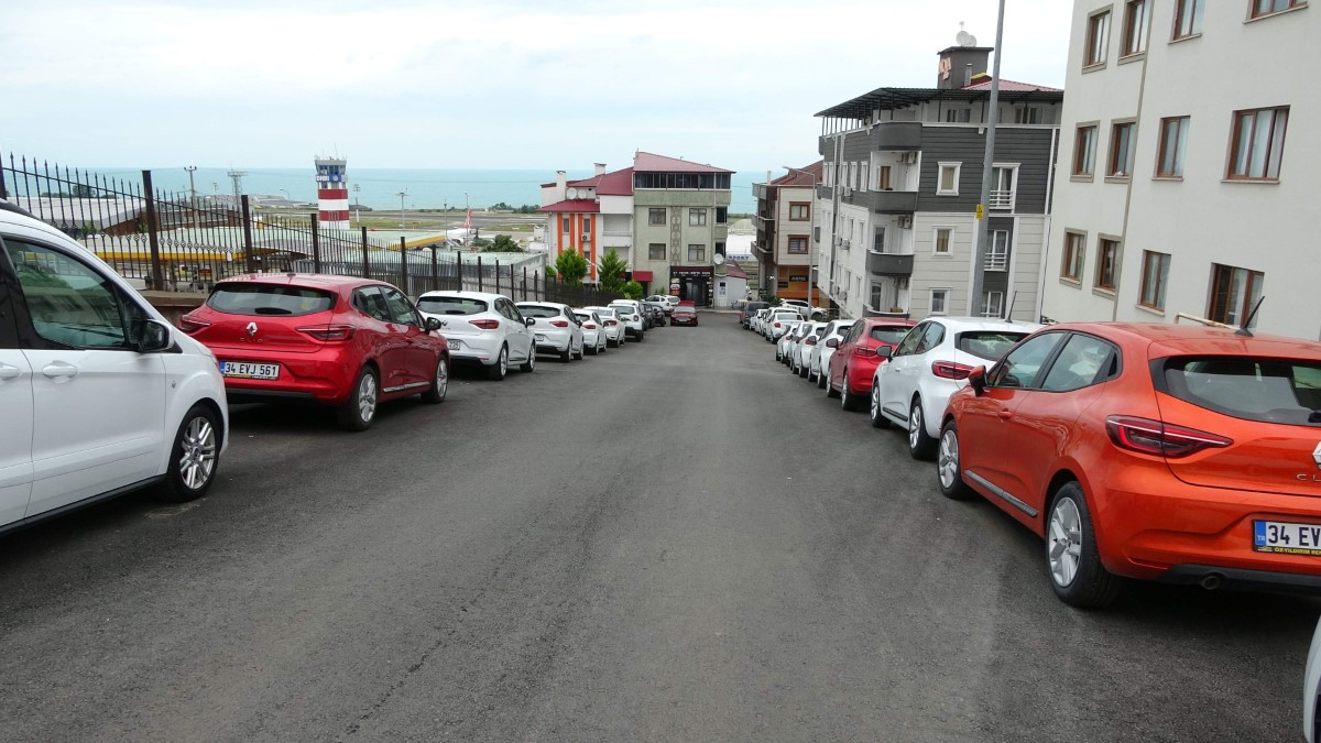 Öte yandan Trabzon Havalimanı yakınındaki Pelitli mahallesinde araç kiralama şirketlerinin park alanlarının dışında çok sayıda kiralık araç sokaklarda ve caddelerde park halinde durarak müşterilerini bekliyor.