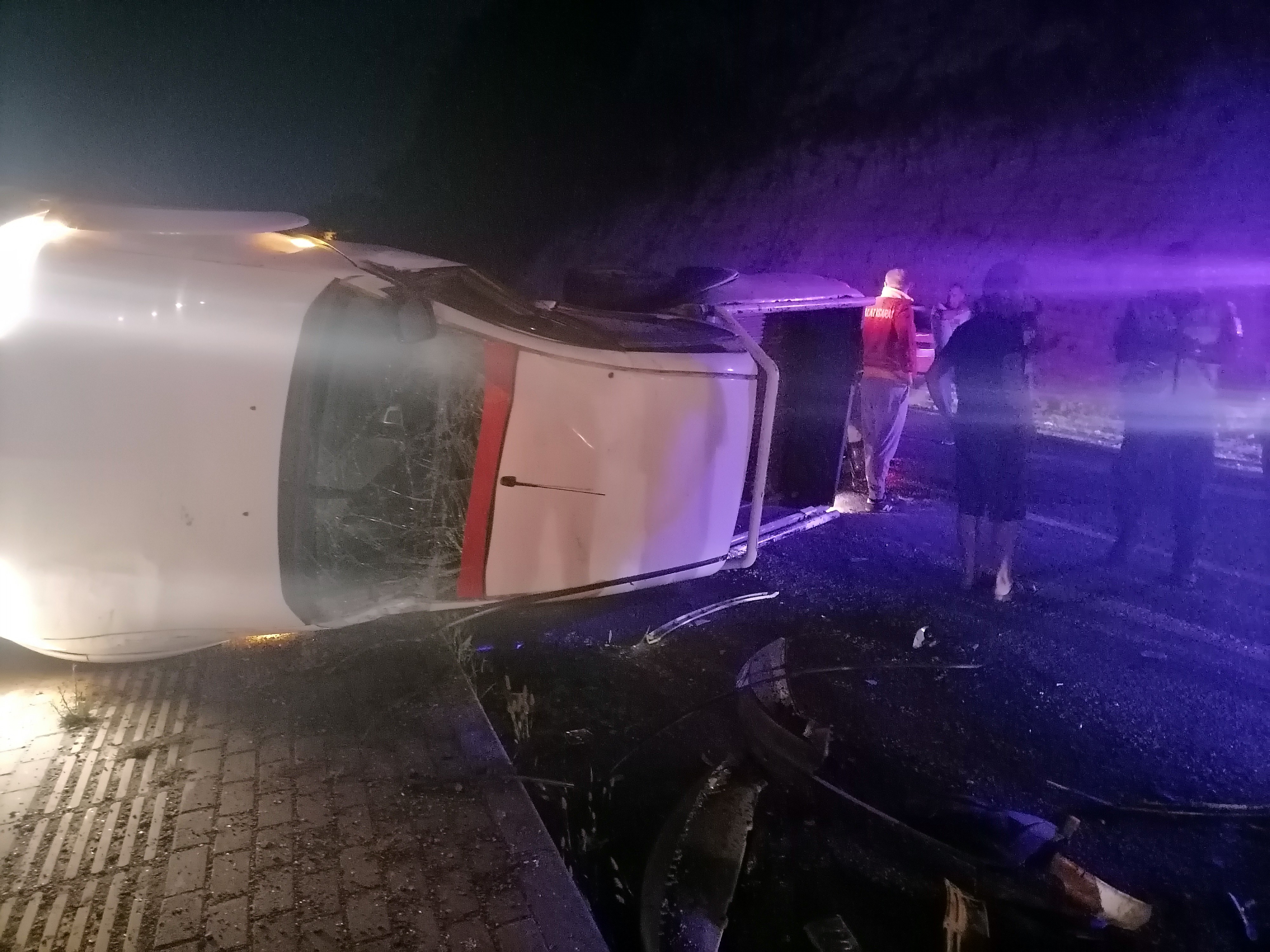 Takla atan araçta sıkışan yaralı, baltayla camlar kırılarak kurtarıldı