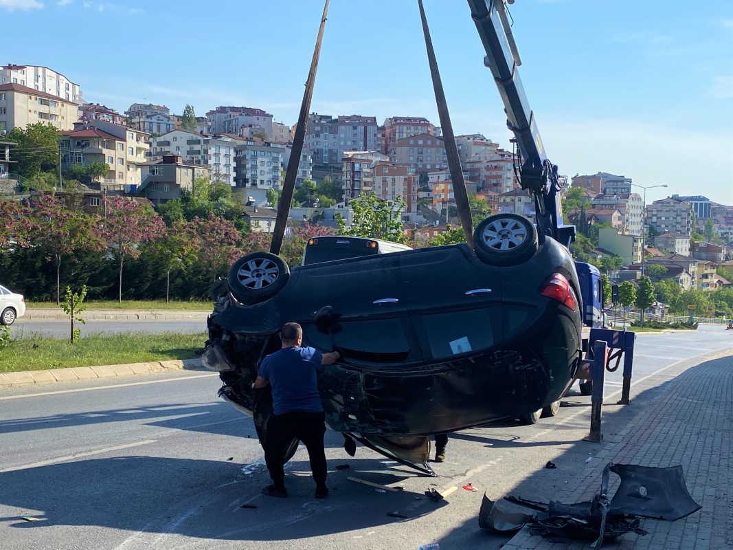 Takla atan otomobilden burnu bile kanamadan çıktı
