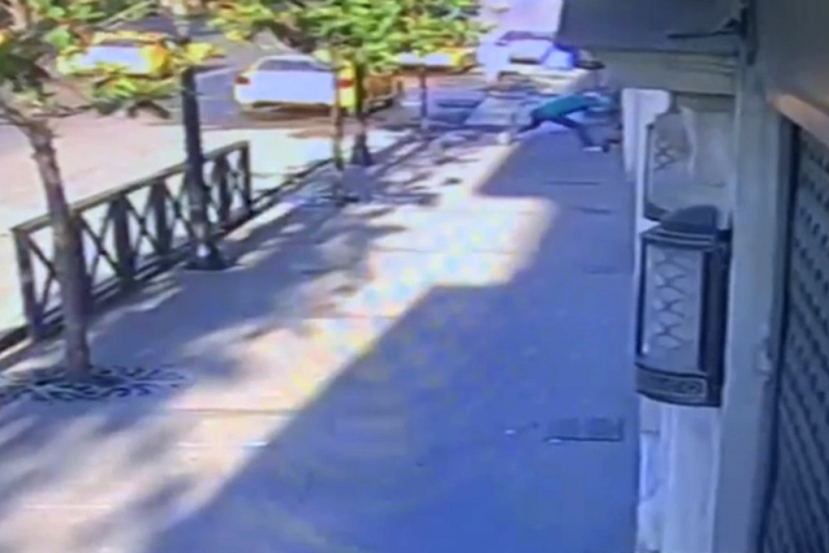 Taksim’de gasp anları kamerada: Telefonunu çaldığı genci güreşçi gibi yere serdi