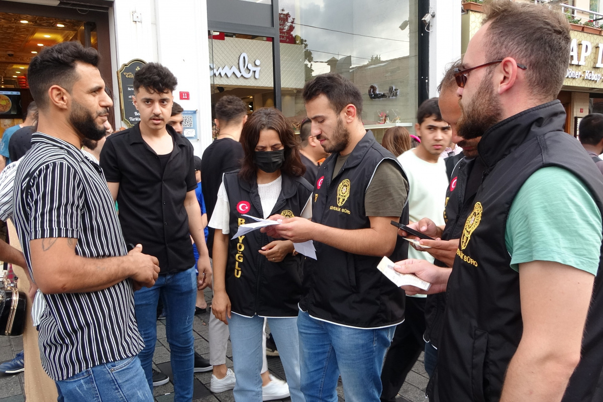 Beyoğlu İlçe Emniyet Müdürlüğü Güvenlik Büro Amirliği ekipleri tarafından, bayramın ilk gününde düzensiz göçmenlere yönelik denetim yapıldı. Taksim İstiklal Caddesi çevresinde yapılan denetimde, kayıt dışı 30 göçmen tespit edildi.