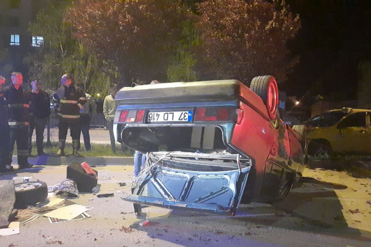 Kaza, Kastamonu Alparslan Türkeş Bulvarı Taşköprü kavşağında meydana geldi. Edinilen bilgiye göre, sürücüleri öğrenilemeyen 37 TT 132 plakalı Hyundai marka ticari taksi ile 37 LD 416 plakalı Tofaş marka otomobil çarpıştı. Kazada ticari taksi refüjdeki ağaca çarparak durabilirken, otomobil ise takla atarak ters döndü. Kazada otomobilin sürücüsü yaralandı.