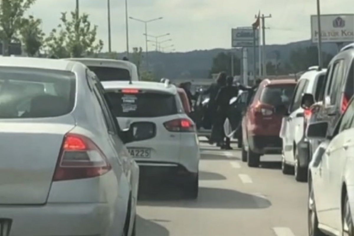 Diğer sürücülerin kornalarına aldırış etmeden oynadılar. Trafikteki sürücü yolu kesen düğüncülere ‘hakkımı helal etmiyorum‘ diyerek tepki gösterdi.