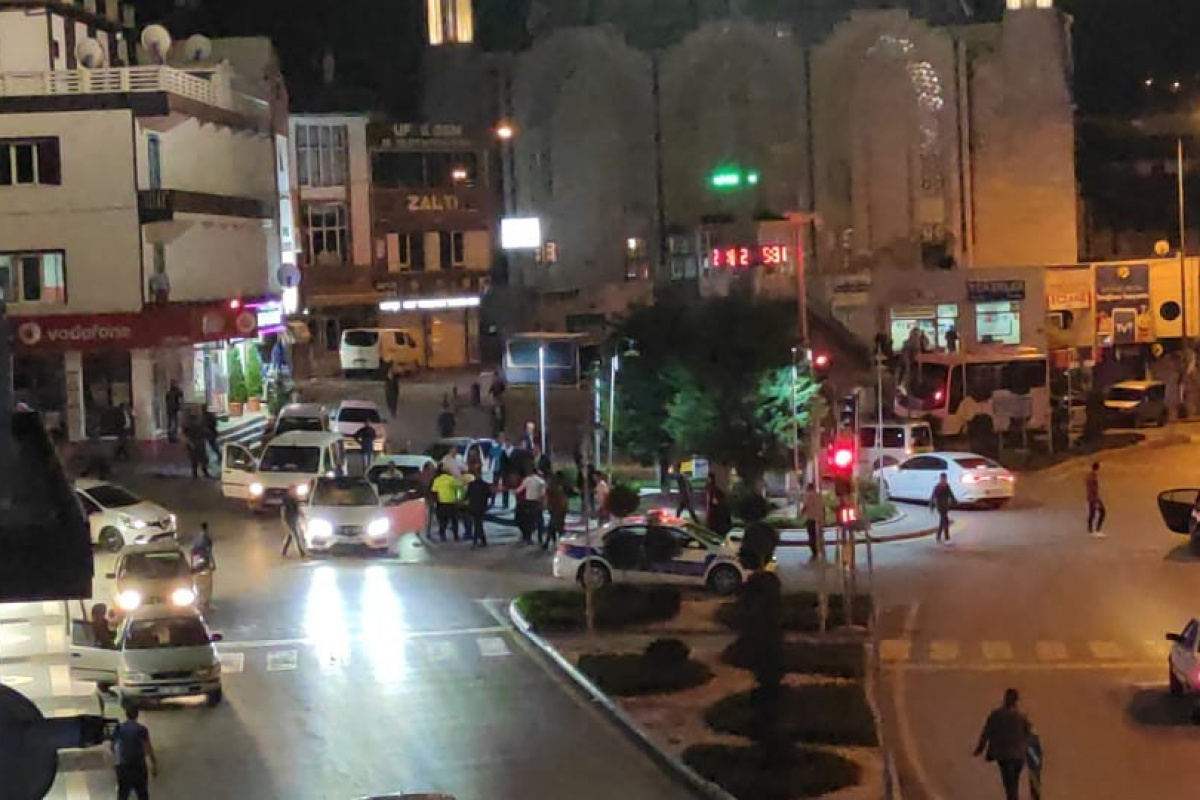Edinilen bilgiye göre ilçe meydanında otomobillerin çarpışması sonucu maddi maddi hasarlı trafik kazası meydana geldi, Kazanın ardından sinirlerine hakim olamayan sürücüler, birbirlerine girdi.