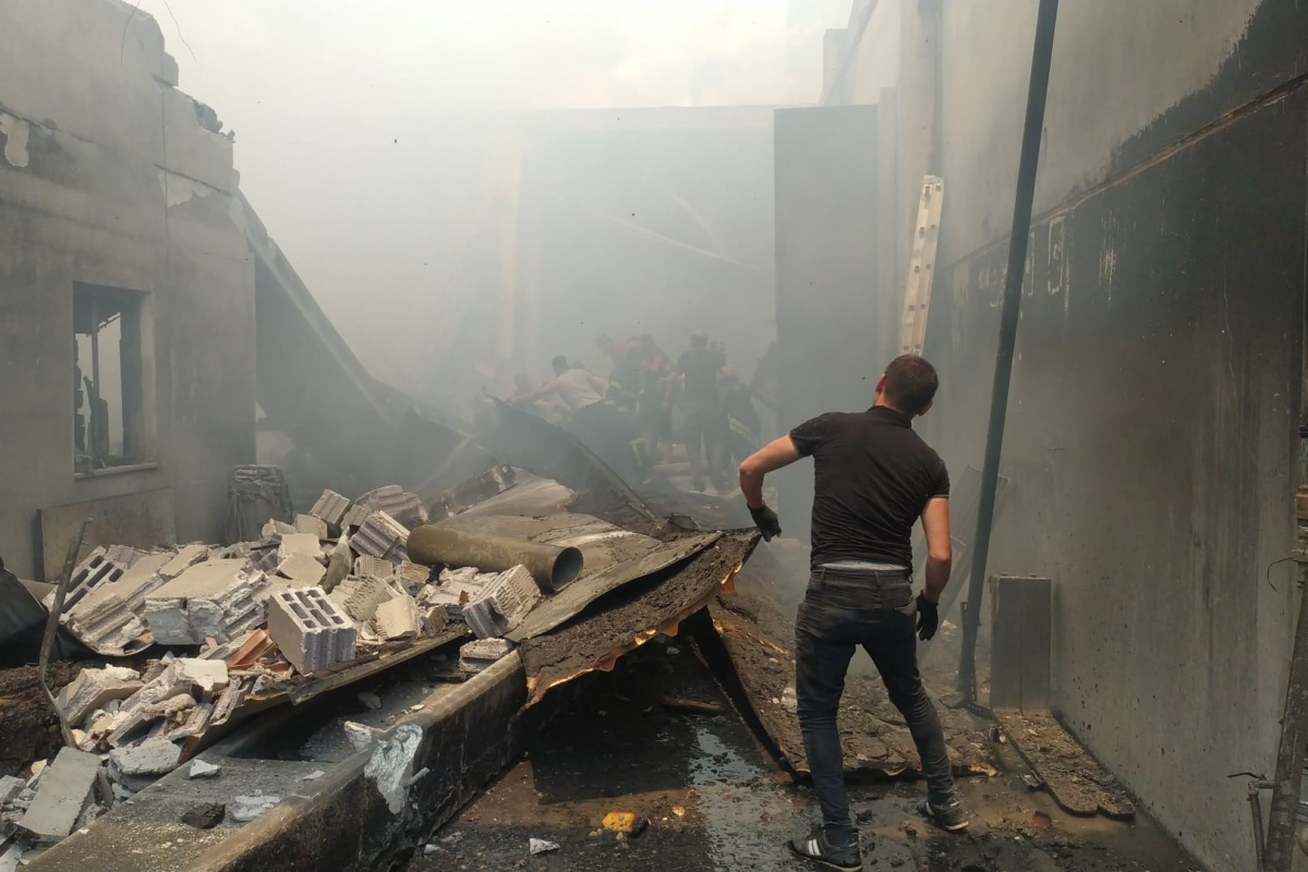 Yanan fabrikadaki çökmede 1 itfaiyeci enkaz altında kaldı