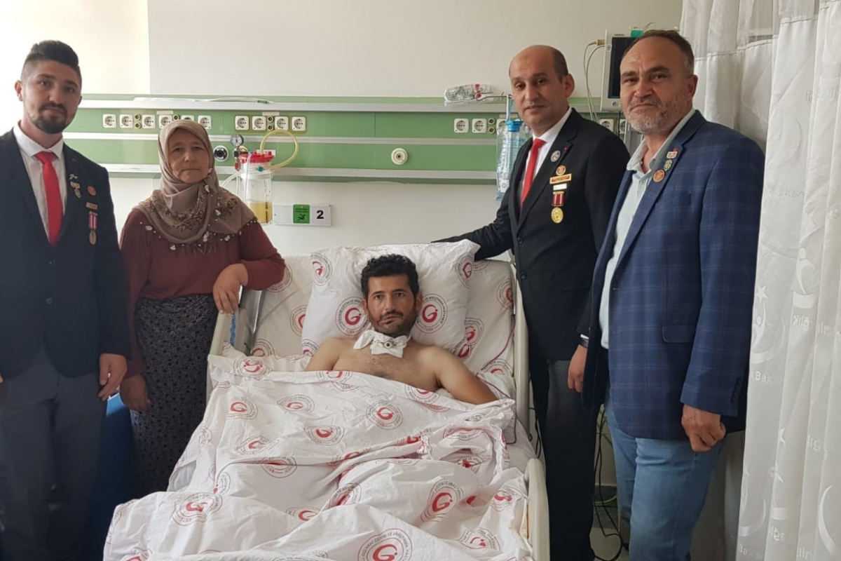 Türkiye Harp Malülü Gaziler Şehit Dul ve Yetimleri Derneği Afyonkarahisar Şube Başkanı İsmail Kumartaşlı, şehit babası Süleyman Üye ve gazi Emre Birgül, yaralı asker Ramazan Şahin’i GATA’da ziyaret ettiler.