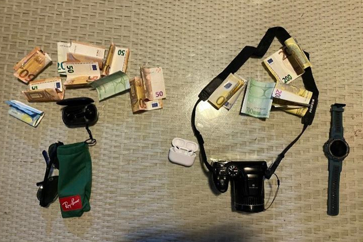 Bodrum KOM ekipleri tarafından gözaltına alınarak karakola götürülen M.O.B. ve M.K. isimli şahısların dalgıç kıyafetlerinin içerisine gizlenmiş para ve fotoğraf makinesi ele geçirildi.
